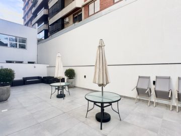 Infraestrutura dos Apartamentos •Paredes duplas e manta acústica entre pavimentos •Vidros duplos laminados no estar •Dormitórios com esquadrias de PVC, vidros duplos e persianas motorizadas •Espera para calefação, lareira a gás ou pellet •Espera para automação de iluminação e persianas •Área social em porcelanato 90x90 e áreas íntimas em piso laminado •Churrasqueira com ponto de gás para bifeteira •Portas em semi-laca branca •Porta de entrada com fechadura digital •Espera para split em todos os ambientes •Tomada de emergência alimentada por gerador Infraestrutura do Empreendimento •Drone point •Espaço concierge mobiliado •Salão de festas equipado •Espaço saúde mobiliado •Coworking condominial •Espaço kids •Depósito nas vagas simples •Gerador de 100 KVA para áreas comuns •Acesso digital ao residencial •Placas fotovoltaicas para uso condominial •Abertura automatizada dos portões de garagem •Marketplace condominial •Bicicletário •Ponto de recarga para carros elétricos nos 3 subsolos